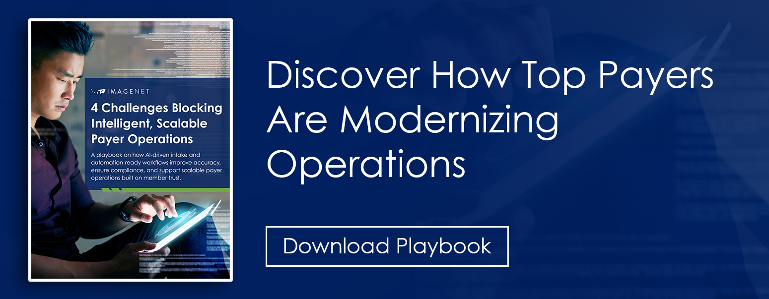 Operational transformation doesn’t happen all at once—it starts with one solid foundation. At Imagenet, we help payers remove friction at the source with AI-powered intake and validation workflows that turn unstructured inputs into clean, connected data. Our intelligent digital mailroom and automation-ready processes ensure that you have a strong data spine built on clean, structured data to support everything that runs across and depends on it.